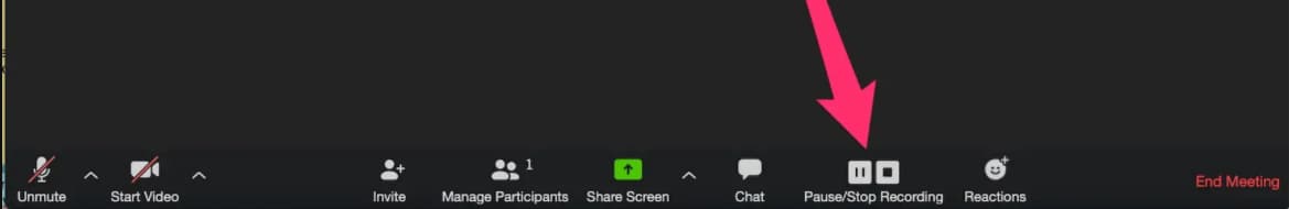2. Once the meeting starts recording, you’ll get the option to PAUSE or STOP it.