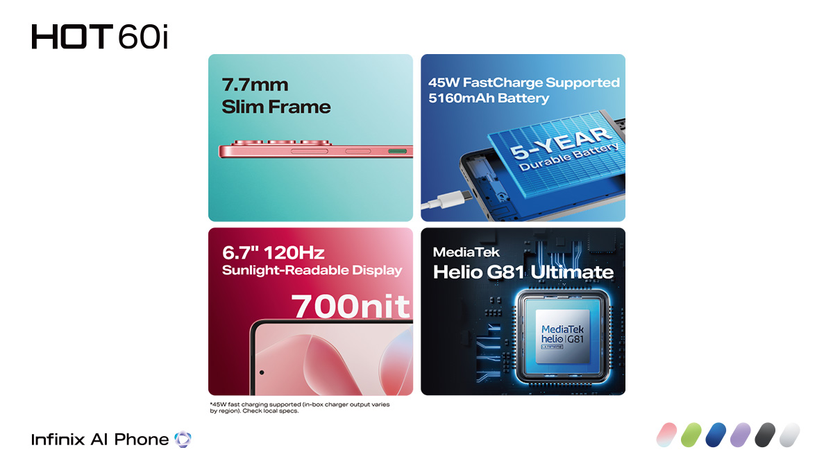 With the HOT 60i, Infinix introduces a smartphone that combines flagship-grade battery life, AI-enhanced software, and a 7.7mm slim frame, delivering both beauty and brains in a truly affordable package.